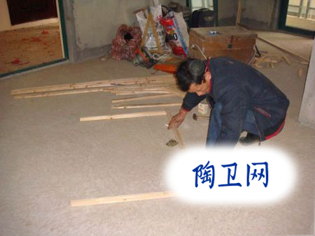 這是客廳到陽臺的墻沒鑿之前的樣子,師傅正在給板子刷清漆。