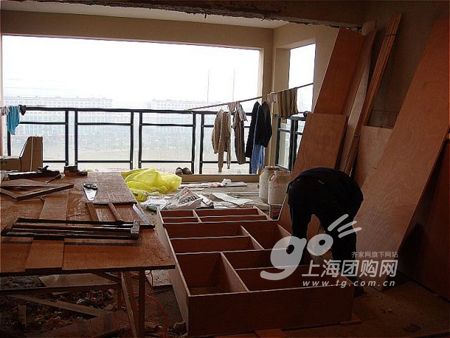水電的走向和插座的布置已經(jīng)到位,師傅在做客房的大柜子,帶頭的師傅非常內(nèi)行,幫我們出主意。