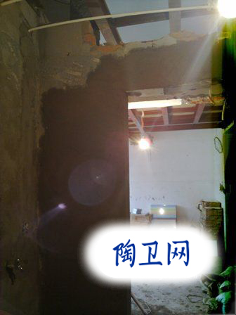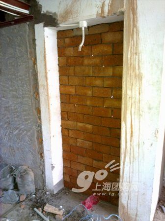這里是新砌起來(lái)的衛(wèi)生間入口,冰箱處的樣子,瓦工葉師傅的手藝看上去不錯(cuò)的。
