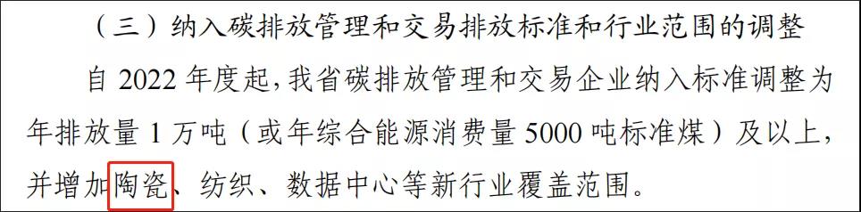 實際上,早前湖北、福建、遼寧等產(chǎn)區(qū)的陶企已經(jīng)被納入了碳配額管理范圍中。