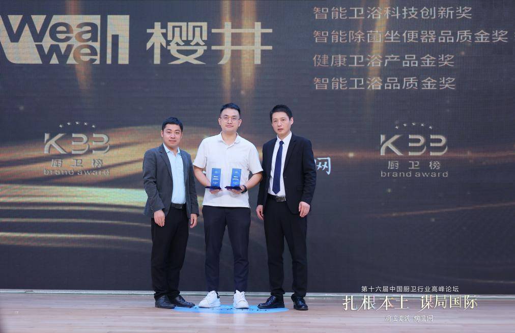 大會(huì)上,廚衛(wèi)資訊首席運(yùn)營官喻月明發(fā)布2022年“廚衛(wèi)榜”榜單,廣東櫻井科技有限公司榮獲“健康衛(wèi)浴產(chǎn)品金獎(jiǎng)”、“智能除菌坐便器品質(zhì)金獎(jiǎng)”、“智能衛(wèi)浴科技創(chuàng)新獎(jiǎng)”、“智能衛(wèi)浴品質(zhì)金獎(jiǎng)”四大獎(jiǎng)項(xiàng),這是行業(yè)對櫻井科技創(chuàng)新發(fā)展成果的高度肯定。