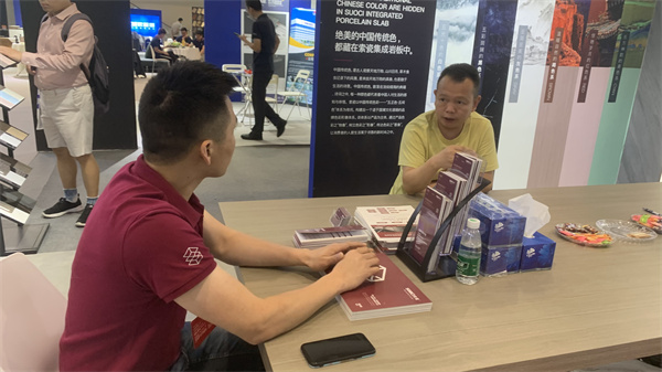 本次展會,索瓷的展位以簡約統(tǒng)一的設(shè)計風(fēng)格,“晨光魚肚白”的背景墻和“云墨灰”的墻面組合,充分呈現(xiàn)出集成巖板的材料美學(xué)和創(chuàng)新技術(shù),吸引了眾多協(xié)會領(lǐng)導(dǎo)、設(shè)計師和客商前來參觀和指導(dǎo)交流。