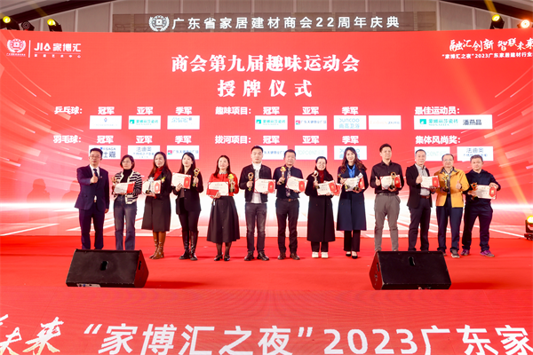 2023年12月28日晚,“家博匯之夜”2023廣東家居建材行業(yè)年會(huì)慶典現(xiàn)場(chǎng)與廣州市從化區(qū)工商聯(lián)簽約結(jié)對(duì)共建,并成立了工程精英金磚俱樂部、高爾夫球俱樂部,頒發(fā)家居供應(yīng)鏈(廣州)專委會(huì)會(huì)員證書,以及進(jìn)行了定點(diǎn)支持市場(chǎng)、商會(huì)2023愛心風(fēng)尚獎(jiǎng)、典派杯大學(xué)生短視頻大賽、第九屆趣味運(yùn)動(dòng)會(huì)頒獎(jiǎng)盛典等精彩環(huán)節(jié)。