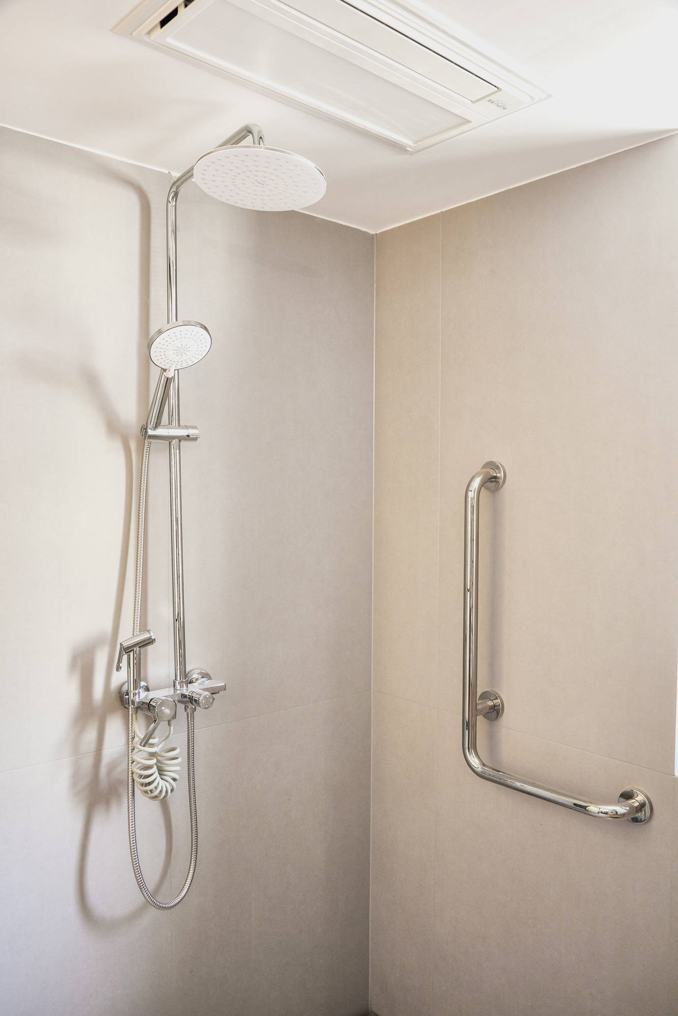 設(shè)計(jì)師對(duì)新房衛(wèi)生間重新布局,借用廚房的一小部分空間,將洗手臺(tái)嵌入墻體,合理劃分出衛(wèi)生間的洗漱區(qū),讓出足夠的空間給如廁區(qū)和淋浴區(qū),并選用鷹衛(wèi)浴智能坐便器、大頂噴花灑,貼心安裝了扶手,不僅有效做到干濕分離,帶來健康舒適的衛(wèi)浴體驗(yàn),最大化滿足了老年人的生活需求。
