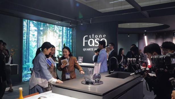 法薩石在這精彩紛呈的4天展會期間,全面展示了品牌形象、品類工藝、潮流新品,以前沿趨勢為導向,結合創(chuàng)新工藝與專業(yè)技術,展館以正紅色調詮釋中國風的端莊,演繹世界未來的風向,斬獲一眾好評,展位人氣爆棚,為到場的友商和觀眾們帶來了獨特的視覺盛宴。